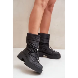 Śniegowce Damskie Na Platformie I Płaskim Obcasie Czarne Seandriel