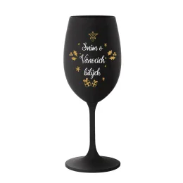 SNÍM O VÁNOCÍCH BÍLÝCH - černá sklenice na víno 350 ml