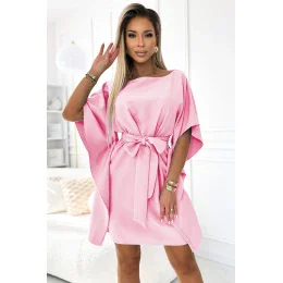 SOFIA Dámske šaty s motýlikom a viazaním v páse - pastelovo ružové. značka Numoco. poľská výroba.