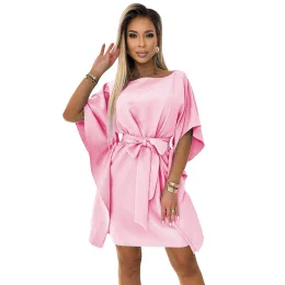 Pridanie recenzie k SOFIA dámské šaty v pastelově růžové barvě se zavazováním v pase model 20273100 - numoco