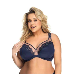 Senzačná, veľmi pohodlná podprsenka Luisse K441 v novej elegantnej tmavo modrej farbe. Mäkký typ, s kosticami. Ideálne pre stredné a väčšie prsia. Veľmi pekne zdobí telo, najmä vďaka jemnej čipke v duete s ľahkým tylom. Veľkou výhodou podprsenky sú predĺžené ramienka, ktoré zaisťujú pohodlie pri nosení. Ich šírka závisí od veľkosti. Vďaka tomu sú prsia dokonale zhrnuté dovnútra, zdvihnuté a udržujú si krásny, zaoblený tvar.