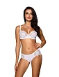 Mäkká balkónová podprsenka v snehovo bielej farbe s trojdielnymi košíčkami zvýrazní a pozdvihne vaše prsia v klasickom štýle bez toho, aby zakrývala ich prirodzenú krásu. Podprsenka je vhodná na každodenné vychádzky aj výnimočné príležitosti s pestrým oblečením. Má zdobené strieborné nite na ramienkach, ktoré sú neodnímateľné, ale nastaviteľné pomocou dvojitého zapínania na háčiky a očká. Centrálna zirkónová ozdoba medzi košíčkami.