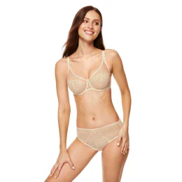 Neobvyklá kombinácia kvetinového plisovania a tylu. Mäkké košíčky z priehľadného materiálu. Zadná časť podprsenky z plisovanej látky. Podprsenka navrhnutá a ušitá v Poľsku.