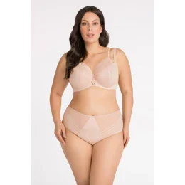 Pohodlná měkká podprsenka značky Gorsenia doporučená pro střední, velká a velmi velká prsa, dokonce až do velikosti košíčku M. Pohodlná měkká podprsenka v krásné kombinaci tylu a výšivky s lesklou nití. Podprsenka má zvýšený můstek, ramínka jsou posunutá do stran, což znamená, že poprsí je shrnuté dovnitř a pevně zvednuté. Jako vždy u značky Gorsenia stabilní tyl a speciální osvědčená konstrukce zajišťují, že prsa jsou dokonale shrnutá dovnitř, nadzvednutá a udržují si krásný, oblý tvar. Podprsenka díky dobře tvarovaným košíčkům prsa zvedá a shromažďuje. Ploché kostice na bocích zajišťují, že podprsenka perfektně sedí na těle - boční kostice zabraňují mačkání boků..... Nastavitelná, neodnímatelná ramínka, ve 3 šířkách: 14, 18, 22 mm. Pohodlná ramínka pro velká prsa, s různou šířkou v závislosti na velikosti, zmírňuje tlak na páteř u větších prsou. Široké boky jsou vyrobeny ze silného lycrového úplet