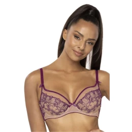 Mäkká béžovo-fialová podprsenka Maureen M-3808/2 má čipkované košíčky s korálkami a kosticami, ktoré sú z vnútornej strany podložené mäkkou bavlnou pre väčšie pohodlie. Nastaviteľné ramienka sú neodnímateľné a boky podprsenky sú vyrobené z elastickej sieťoviny bez bočných kostíc pre väčšie pohodlie. Podprsenka má trojcestné zapínanie na dva alebo tri háčiky, ktoré umožňuje ideálne nastavenie obvodu pod prsiami.