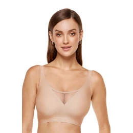 Misty je měkký podprsenka bez drátů, který přirozeně tvaruje poprsí, lehce ho zvedá a sbírá do středu. Hladký, pohodlný podprsenka s vložkami, které lze odstranit podle potřeby. Absence drátů a minimální počet švů z něj dělají neuvěřitelně diskrétní a téměř neviditelný pod oblečením. Zapínání na 3 háčky a čtyřstupňová regulace zajišťují, že je to podprsenka dobře podpírající bez ohledu na velikost. Nastavitelné ramínka, odpojitelná na zádech, umožňují nošení podprsenky dvěma způsoby: klasickým a se zkříženými ramínky. Dobře zvedá a sbírá prsa, ideální na každodenní nošení a lehkou fyzickou aktivitu. Hladká látka přiléhá k tělu jako druhá kůže. Ve středu podprsenky jsou čtyři dýchací trojúhelníkové prostory. Další posílení stabilizačních pásků po stranách misek zabraňuje posunutí a zajišťuje, že prsa zůstávají na svém místě.