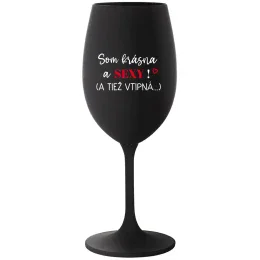 SOM KRÁSNA A SEXY! (A TIEŽ VTIPNÁ...) - čierny pohár na víno 350 ml