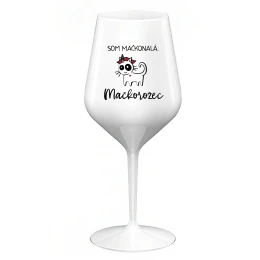 SOM MAČKONALÁ. MAČKOROŽEC - biely nerozbitný pohár na víno 470 ml