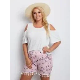 Růžové plus size vzorované šortky .