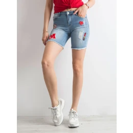 Džínové šortky s barevnými záplatami v modré barvě.