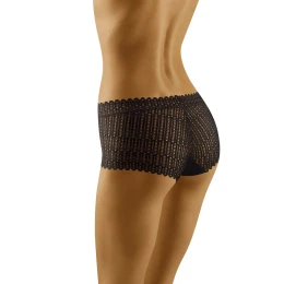 Nápadné kalhotky vyrobené téměř výhradně z krajky. Střih a'la šortky. Zadní strana a boky jsou prolamované, jemné, velmi ženské. Přední díl je doplněn vložkou z hladké, příjemné látky, která neprosvítá. Složení: 83 % polyamid, 17 % elastan.