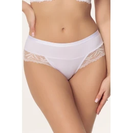 Szorty damskie Petra DZ25 w kolorze białym to idealne połączenie wygody, kobiecej elegancji oraz funkcjonalnego kroju. Model został zaprojektowany z myślą o kobietach, które cenią komfort noszenia, a jednocześnie chcą wyglądać stylowo i zmysłowo w każdej sytuacji. Pełny, zabudowany krój zapewnia doskonałe dopasowanie oraz poczucie swobody przez cały dzień. Przód szortów wykonano z gładkiej mikrofibry, która miękko układa się na ciele i nie odznacza się pod ubraniem. Tył natomiast wykończono delikatną, ażurową koronką, dodając bieliźnie lekkości i eleganckiego charakteru. W pasie zastosowano płaską gumkę, która nie uciska i gwarantuje stabilne utrzymanie szortów na miejscu. Dzięki starannie dobranemu składowi materiałowemu model DZ25 jest elastyczny, przewiewny i przyjemny w dotyku. Szorty Petra DZ25 doskonale sprawdzą się zarówno na co dzień, jak i jako element kompletu z biustonoszami z tej samej linii.