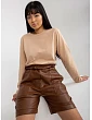 Khaki zateplené šortky na voľný čas z ekologickej kože.