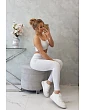 Prezentujem Państwu komplet bluzki i leginsów. Bluzka na ramiączka. Bluzka oraz leginsy z prążkowanego materiału. Komplet wykonany je z wysokiej akości materiału. Rozmiar je uniwersalny i bedzie odpowiedni dla Pani w rozmiarze S lub M.