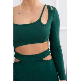 Predstavujeme vám sadu blúzky a nohavíc. Blúzka z rebrovanej tkaniny s dlhými rukávmi. Obyčajné nohavice bez vreciek. Súprava je vyrobená z vysoko kvalitného materiálu. Veľkosť je univerzálna a vyhovuje dámam veľkosti S, M alebo L.