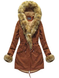 Bavlnená dámska zimná bunda parka vo vínovej farbe s kožušinou (xw801-3x)