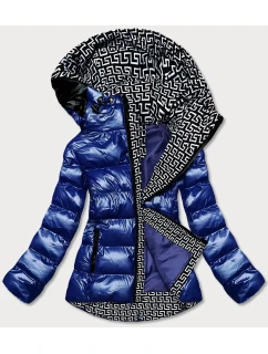 Tmavomodrá lesklá dámska bunda s ozdobnou podšívkou (xw810x)