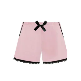 Krátke šortky Viscosa. Nohavice zakončené čipkou, bočné vrecká v páse s ozdobnou saténovou mašľou.