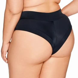 Spodní díl plavek 13/15/B black AVA - černá barva - vysoký pas - překřížená ramínka vpředu opticky zeštíhlí bříško - rychleschnoucí materiál