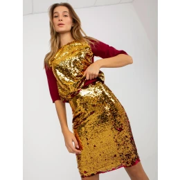 Bordowa damska spódnica ołówkowa z cekinami .