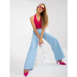 Svetlomodré látkové nohavice so širokými nohavicami.