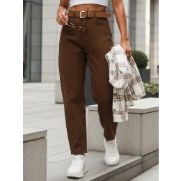 Dámske nohavice s vysokým pásom a opaskom hnedé FashionStreet UY2920