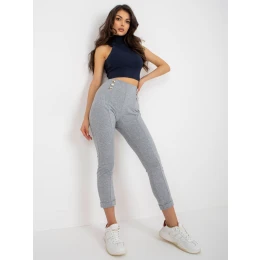 Szare damskie spodnie dresowe z ozdobnymi guzikami .
