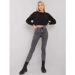Šedé džínsové nohavice s vysokým pásom .