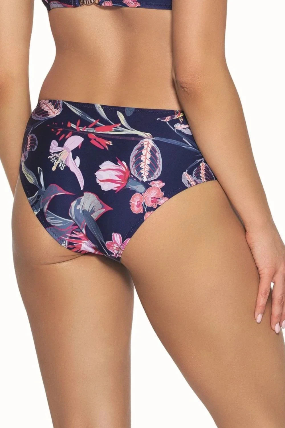 Spodný diel plaviek 167/12 Flowers AVA - tmavomodrý - vyrobený z kvalitného mikrovlákna - široké boky Zloženie materiálu: 80% polyamid + 20% elastan