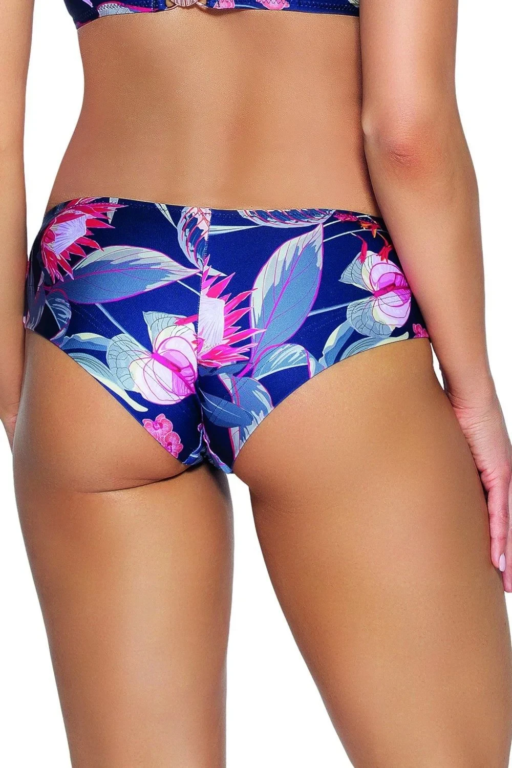 Spodný diel plaviek 167/5 Flowers AVA - tmavomodrý - vyrobený z kvalitného mikrovlákna - typ Brazilian Zloženie materiálu: 80% polyamid + 20% elastan