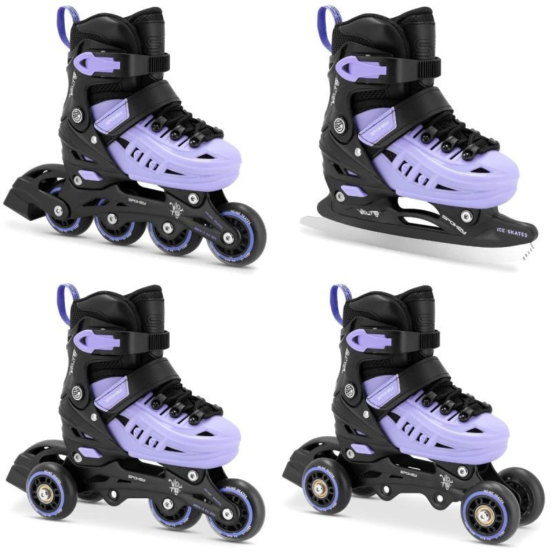 - Typ: nastaviteľné 4 v 1 (inline korčule, kolieskové korčule, kolieskové korčule, inline korčule)