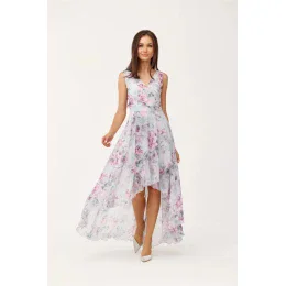 Maxi šaty jsou vyrobeny z lehkého a jemného šifonu, který se velmi pohodlně nosí. Večerní šaty mají krásný obálkový výstřih, který opticky prodlouží naši siluetu a krásně zvýrazní poprsí. Maxi šaty mají také asymetrický střih, který umožňuje ukázat nohy a bude ideálním modelem pro nižší i vyšší ženy. Šaty mají všitou spodničku, takže látka nebude prosvítat. Tento model šatů je dodáván v krásných květinových vzorech. Výrobek je vyroben a ušit v Polsku.
