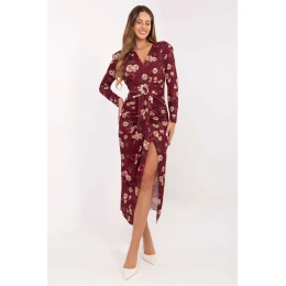 Tieto elegantné, priliehavé šaty sú ideálnou voľbou na výnimočné príležitosti. Sú vyrobené z príjemnej zmesi viskózy a polyesteru, krásne sa prispôsobia postave a zvýraznia ženské tvary. Model má midi dĺžku a dlhé rukávy, čo mu dodáva nádych elegancie. Na prednej strane je efektný rozparok, ktorý siaha až po zadok, jemne zvýrazňuje nohy a celku dodáva zmyselný charakter. Hlboký výstrih opticky zjemňuje krk a zvýrazňuje dekolt, zatiaľ čo ozdobné záhyby s kovovým prvkom sú elegantným akcentom, ktorý priťahuje pozornosť. Šaty s kvetinovým vzorom sú ideálne na večierky, recepcie a slávnostné udalosti a spájajú ženskosť, eleganciu a pohodlie v jednom.