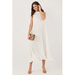 Pleťové koktejlové šaty jsou elegantním návrhem, který se skvěle hodí na výjimečné události a večírky. Jejich lehký, vzdušný střih s midi délkou se krásně skládá při pohybu, zdůrazňuje ženskou siluetu a dodává outfitu jemnou lehkost. Model bez rukávů s klasickým, kulatým výstřihem vypadá nadčasově a elegantně. Originálním prvkem je šněrování na levém rameni, které šatě dodává jedinečný charakter a přitahuje pozornost. Spodek zdobený jemnou volánkou dodává celku romantický šarm a lehkost. Hladký materiál složený z polyesteru, viskózy a elastanu zajistí pohodlí při nošení, správné přizpůsobení a volnost pohybů. Jedná se o ideální hostinské a večerní šaty pro ženy, které oceňují eleganci v moderním provedení.