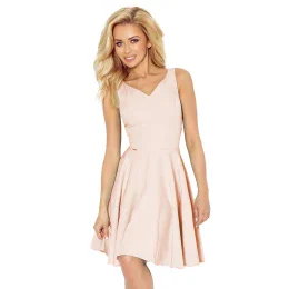 Spoločenské šaty luxusné s kolovou sukňou stredne dlhé svetlo ružová - Ružová / XL - Numoco