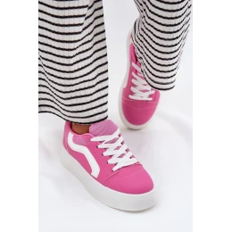 Dámske tenisky z ekokože sú skvelou voľbou na každý deň a spájajú štýl a pohodlie. Umiestnené na platforme poskytujú pohodlie a dodatočnú stabilitu. Zaoblená špička zaručuje voľnosť pohybu a stielka potiahnutá mäkkým materiálom zabezpečuje pohodlie počas celého dňa. Klasický strih týchto tenisiek sa skvele hodí na každodenné nosenie a ponúka funkčnosť aj módny vzhľad.