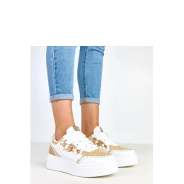 Moderná dámska športová obuv z odolnej ekokože, ktorá spája funkčnosť s módnym dizajnom. Model má okrúhlu špičku, šnurovanie pre ideálne prispôsobenie a pletený prvok v prednej časti, ktorý dodáva obuvi charakter a jedinečný štýl. 5 cm platforma zaručuje ľahký krok a pohodlie pri chôdzi a vnútro z textílie zaručuje pohodlie počas celého dňa. Ide o štýlovú a funkčnú športovú obuv, ktorá je ideálna na každodenné mestské outfity.
