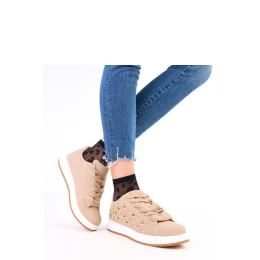 Dámska športová obuv s módnym, ležérnym charakterom, vyrobená z ekologickej semišovej kože. Model so šnurovaním s ozdobnými niťami sa vyznačuje moderným dizajnom a štýlovým prevedením. Nízky strih s okrúhlou špičkou a mäkká textilná stielka zaručujú pohodlie pri nosení a 3 cm platforma dodáva komfort a jemne nadvihuje postavu. Ideálne na každodenný mestský štýl.