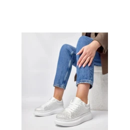 Športové topánky so zdobenými zirkónmi spájajú športové pohodlie s nádychom elegancie. Sú vyrobené z kvalitnej ekokože, vyzerajú štýlovo a ľahko sa udržiavajú. Okrúhle zakončenie špičky zaručuje pohodlie a voľnosť prstov počas každodenného nosenia. Športový strih modelu s nízkym šnurovaním zaručuje dobré prispôsobenie sa nohe a stabilitu. Textilná stielka zvyšuje pohodlie pri celodennom nosení. Nápadité zirkóny dodávajú topánkam lesk a módny charakter. 5 cm vysoká platforma jemne zvýrazňuje postavu, pričom zachováva pohodlie.