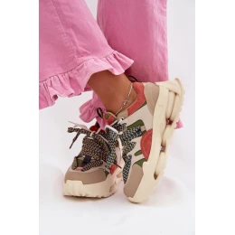 Dámske tenisky vyrobené z kombinácie prírodnej kože a semišu sú štýlovou voľbou pre ženy, ktoré ocenia pohodlie a osobitý vzhľad. Farebné detaily zvýrazňujú ich moderný charakter. Dvojité šnurovanie je zaujímavým detailom a umožňuje dobré prispôsobenie sa nohe. Masívna platforma opticky zužuje postavu a pridáva niekoľko centimetrov na výške, pričom poskytuje pohodlie pri chôdzi. Ľahká konštrukcia zaručuje, že tenisky sú pohodlné na každodenné nosenie a dokonale dopĺňajú mestský štýl.