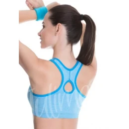 Hladká bezešvá podprsenka bez kostic je ideální pro každý druh sportu. Je vyrobena z jemné polyamidovo-polyestrové příze, která je velmi příjemná na dotek. Má odnímatelné vycpávky v košíčcích, které jsou spojené, aby nedocházelo k jejich přesouvání během fyzické aktivity. Perfektně zvýrazní poprsí. Ramínka jsou zkřížená na zádech.