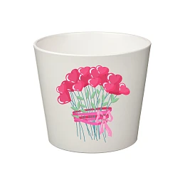 Elegantní bílý květináč s něžnou ilustrací kytice ze srdíčkových květin je krásným doplňkem do každého interiéru. Jemný motiv symbolizuje lásku, vděčnost a radost, díky čemuž je květináč ideální nejen jako dekorace, ale i jako milý dárek pro někoho blízkého.