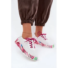 Poltopánky sú pohodlnou a štýlovou voľbou na každý deň. Sú ľahké a pohodlné, skvele sa hodia na každodenné nosenie a poskytujú voľnosť a pohodlie na každom kroku. Model je umiestnený na vzorovanej platforme, ktorá priťahuje pozornosť a dodáva moderný charakter. Šnurovanie s ozdobným nápisom podčiarkuje ich módny štýl a zároveň umožňuje dobré prispôsobenie sa nohe. Svetlo s perforáciou zabezpečuje dostatočnú vzdušnosť, čo zvyšuje pohodlie pri nosení, najmä počas teplejších dní. Kožená stielka typu Comfort Shoes sa postará o pohodlie a správnu oporu chodidla. Je ideálnou voľbou pre ženy, ktoré pri každodennej obuvi ocenia originálny vzhľad, ľahkosť a pohodlie.
