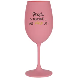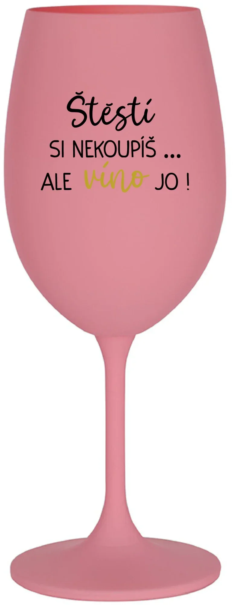 ŠTĚSTÍ SI NEKOUPÍŠ...ALE VÍNO JO! - růžová sklenice na víno 350 ml