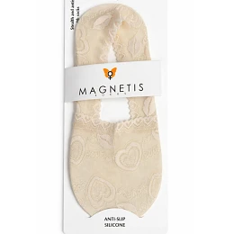 Dámske ponožky Magnetis Heart sú štýlové a pohodlné ponožky v štýle balerín, ktoré spájajú elegantný vzhľad s každodenným pohodlím. Sú vyrobené z kvalitnej bavlny (95 %) s elastanom (5 %), sú mäkké, priedušné a dokonale sa prispôsobia chodidlu. Model má jemný vzorovaný motív srdca, ktorý dodáva ponožkám jemný, ženský charakter. Vďaka nízkemu strihu zostanú ponožky neviditeľné vo väčšine topánok, ako sú baleríny, mokasíny alebo poltopánky. Protišmykový silikón na päte zabraňuje pošmyknutiu ponožiek pri chôdzi a zaisťuje pohodlie počas celého dňa. Ponožky Magnetis Heart sú ideálnym riešením pre ženy, ktoré ocenia kombináciu funkčnosti, pohodlia a módneho dizajnu.