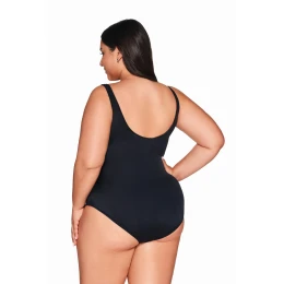 Każda kobieta zasługuje na spektakularny wygląd z SKJ 61! Ten elegancki jednoczęściowy strój kąpielowy, wykonany z wysokogatunkowej dzianiny, doskonale maskuje ewentualne niedoskonałości. Miseczki typu kopa, ukryte pod sprężystą dzianiną, stabilizują biust, unosząc go ku górze i eksponując w dekolcie. Szerokie ramiączka odciążają kręgosłup, a subtelne marszczenia podkreślają walory sylwetki. Jednolity, czarny d: