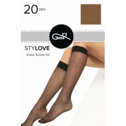 Punčochové zboží značky Gatta. Stylove 02 model. Výrobek je vyroben z 87 % z polyamidu a 13 % z elastanu. Výrobek pro ženy. Tloušťka: 20 denierů. S označenými prsty.