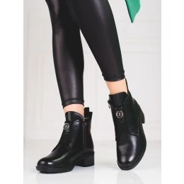 Stylové černé dámské kotníčkové boty na plochém podpatku
