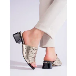 Stylové nazouváky zlaté dámské na širokém podpatku