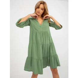 Khaki letné šaty s volánom a 3/4 rukávmi PODĽA ÚROVNE .